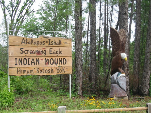 The naming of U. S. Highway 190 between the Sabine River and DeRidder, LA, as the Atakapa-Coushatta Trace is attributed to the fact that Atakapa Indians inhabited and traversed Beauregard Parish. The placement of the historical marker you see at the top of this page is credited to Ms. Velmer Smith, an honored and long time supporter of our people. It is located adjacent to Highways 190 and 111 at the junction. It is more clearly defined as part of the Atakapa foot trails in the Atakapas’ homeland that reached as far up as parts of present-day Natchitoches, Rapides, and Sabine Parishes and parishes lying along all the S.E. Texas and S.W. Louisiana coast. The Atakapa-Ishak have been identified as the only tribe, consisting of six bands to inhabit all of Southwest Louisiana and Southeast Texas for centuries prior to habitation by Europeans.